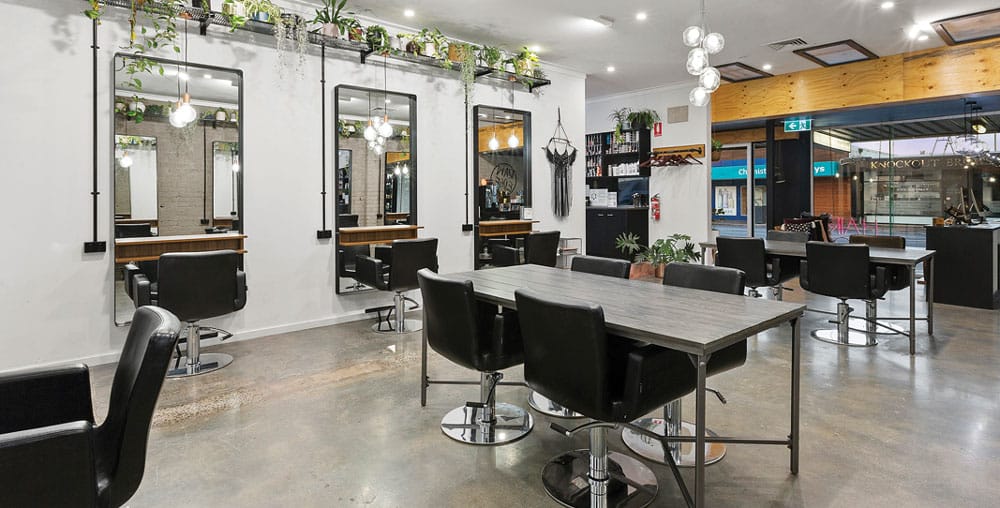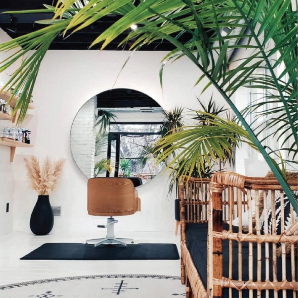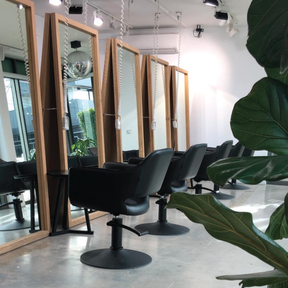 Create a cosy, communal vibe in the salon with an abundance of sunlight, filled with natural looking, textured furnishings.