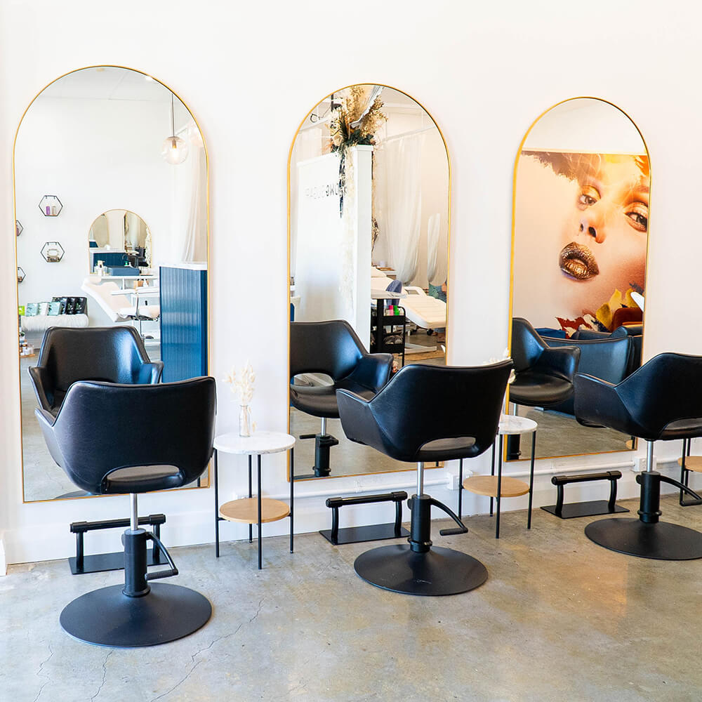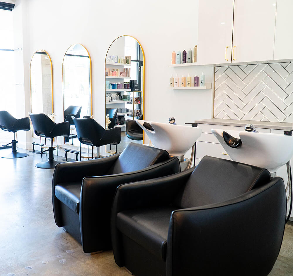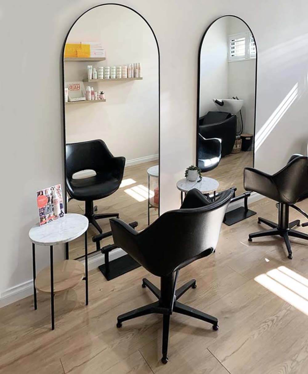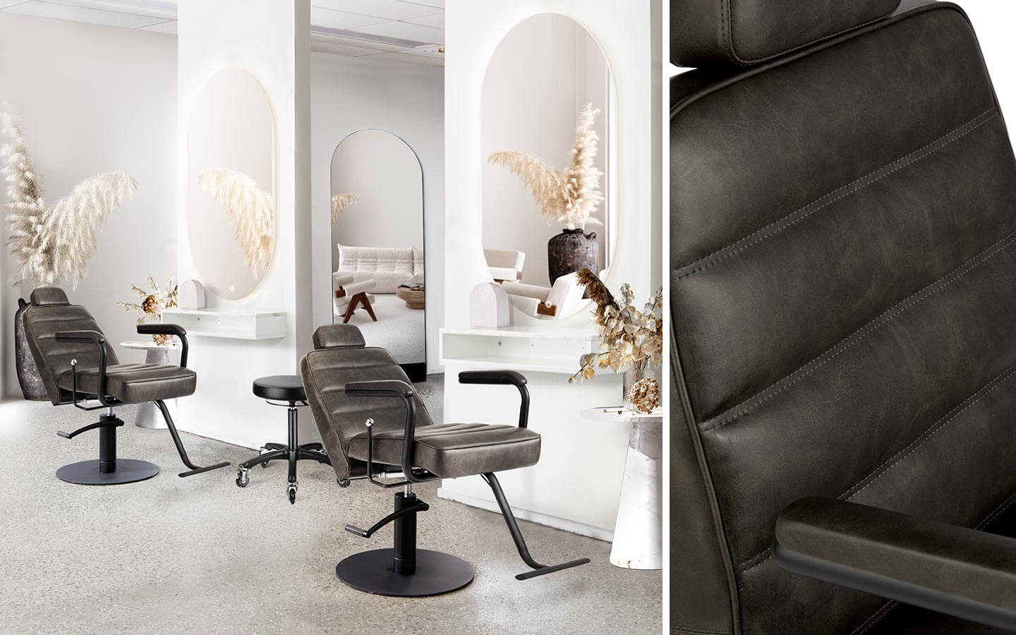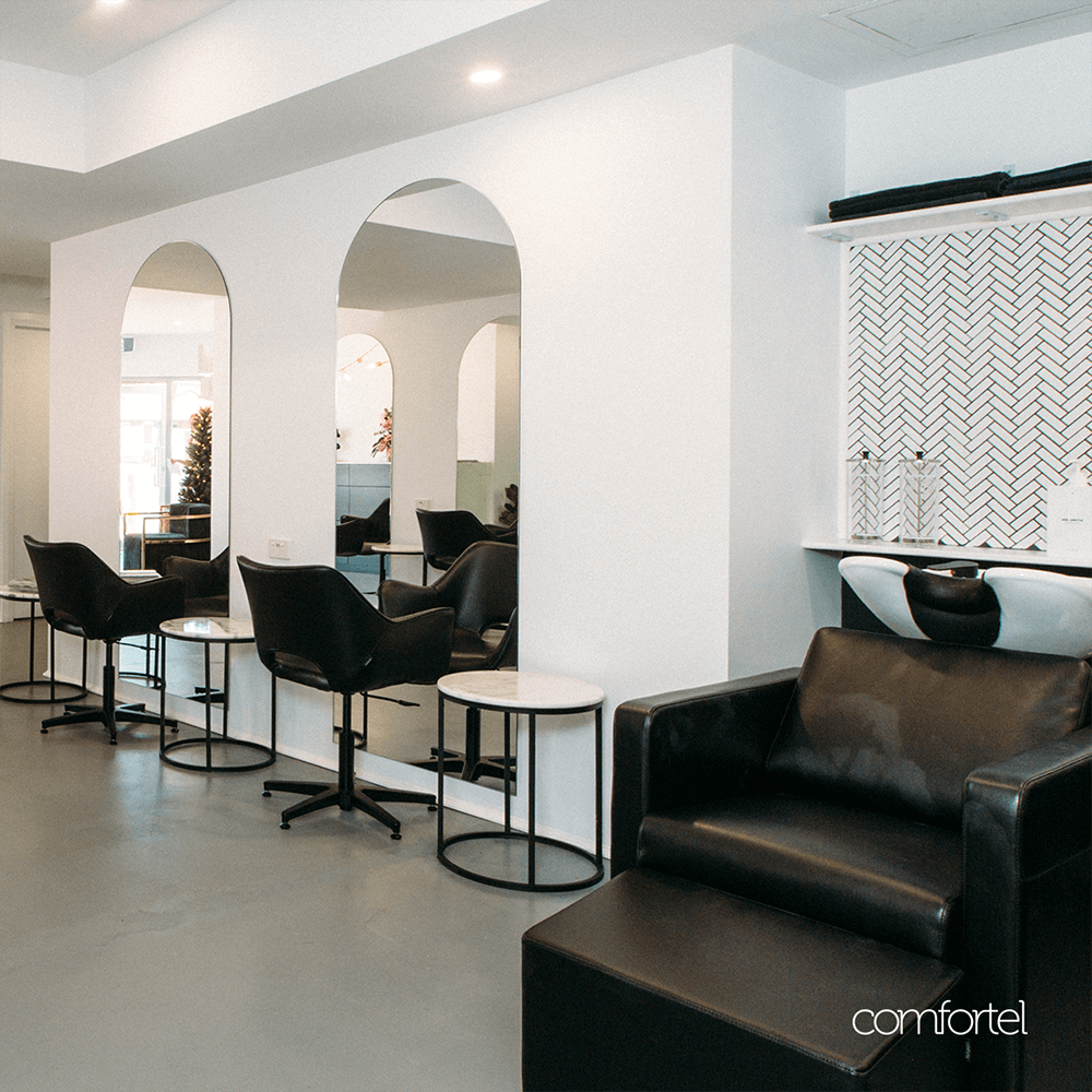 The salon look embraces natural, often light textured materials combined with black structural furniture to create a ‘modern monochrome’ look. Simplicity in every element, this sleek salon look has no clutter with an abundance of raw materials that can include concrete, metal, glass and steel.