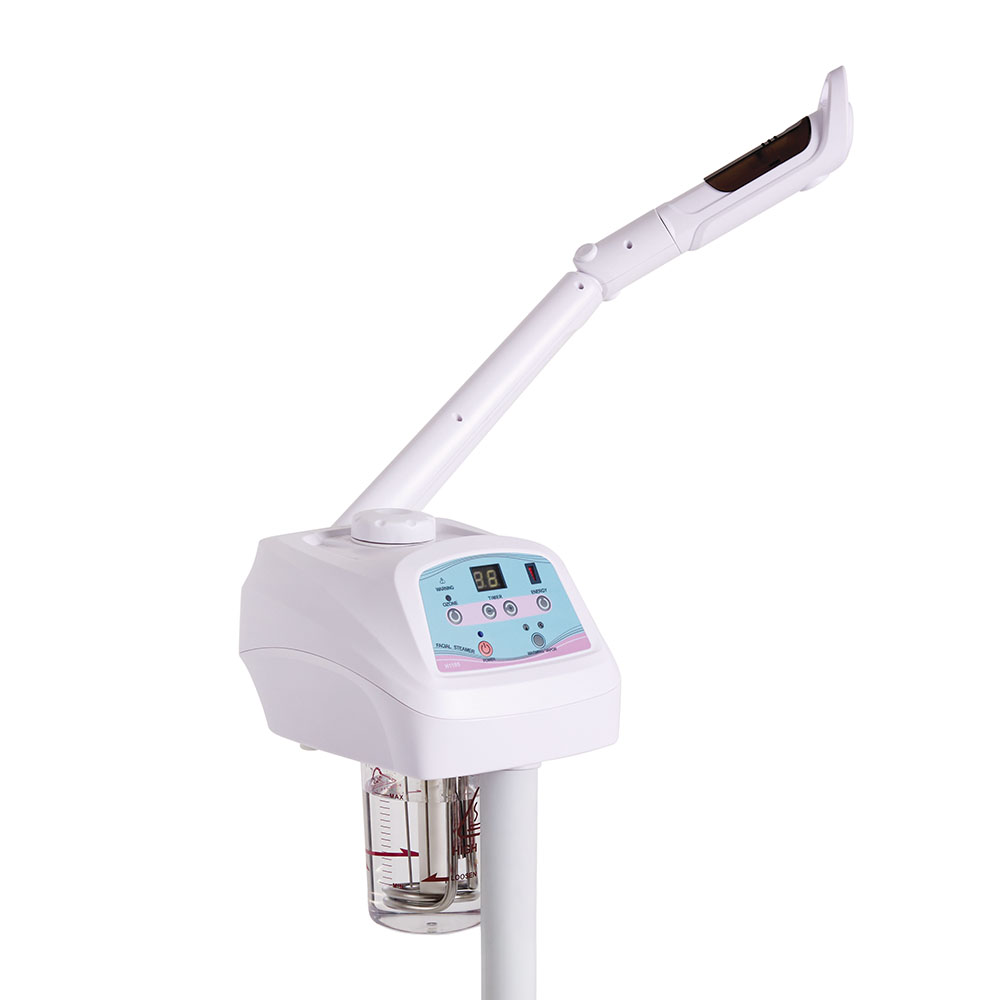 A sleek and practical essential for any beauty salon or training academy, this digital facial steamer with ozone is designed for effortless use. Featuring a pivoting arm and 360° rotating head, it provides precise steam direction for optimal client comfort. The adjustable height, digital timer, and vapor volume control ensure a customized experience, while the built-in water level detector and automatic shut-off enhance safety and convenience.