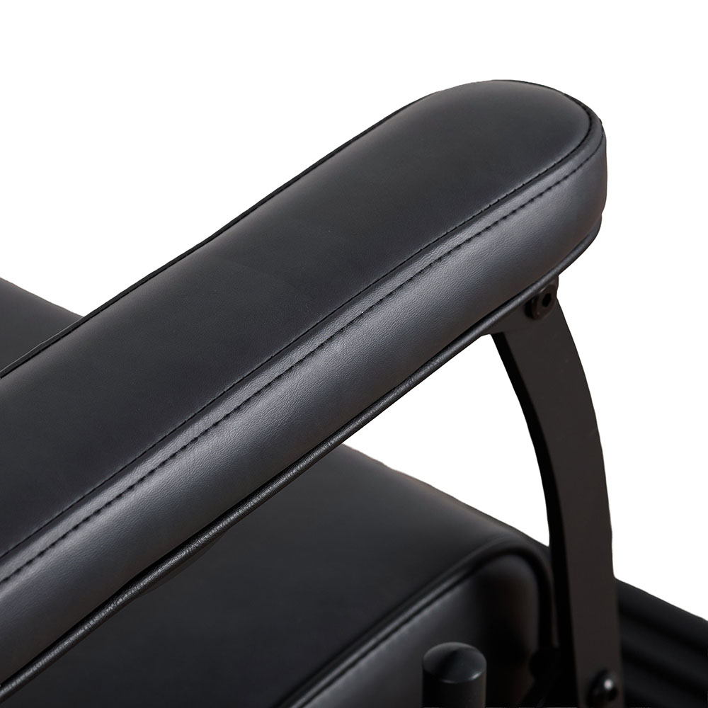 Nighthawk takes flight. This barber chair flies above the trends with undeniable confidence. Upholstered in Comfortel’s Midnight, a deep blue black shade finished with black piping, Nighthawk captures the sleek edge of modern barbershop design. Striking from every angle, with a wide supportive seat designed for all day comfort, Nighthawk is the professional barber chair that doesn’t follow trends. It flies above them.