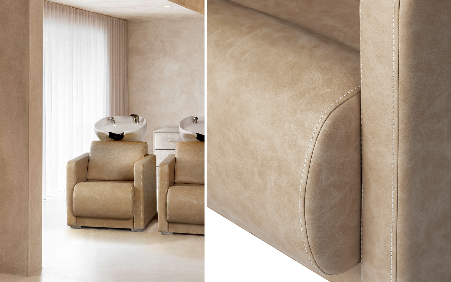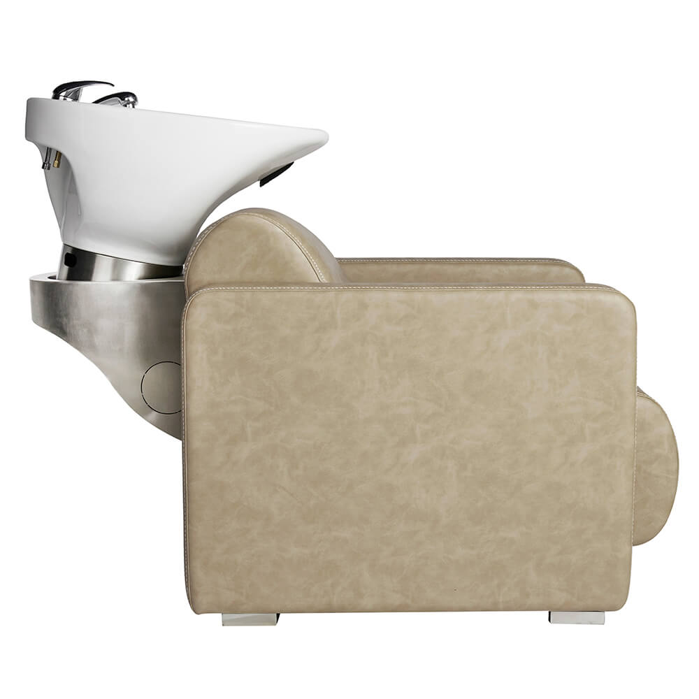 If you’re looking to invest in a compact shampoo lounge and hairdressing basin, Club in Sand is for you. Modern looking, this hairdressing wash lounge for your backwash area has detailed chunky curved features. For salons looking for a neutral, laid back style, the sandy beige colour upholstery provides the neutral textures you need to complete the look. An all in one design with cutaway basin, no matter which way you look at it Club Sand is striking from every angle.