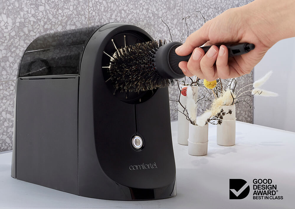 Designed by Comfortel, An electric hair brush cleaner that is a quick and easy solution for the dreaded task of removing hair from your hair brushes.