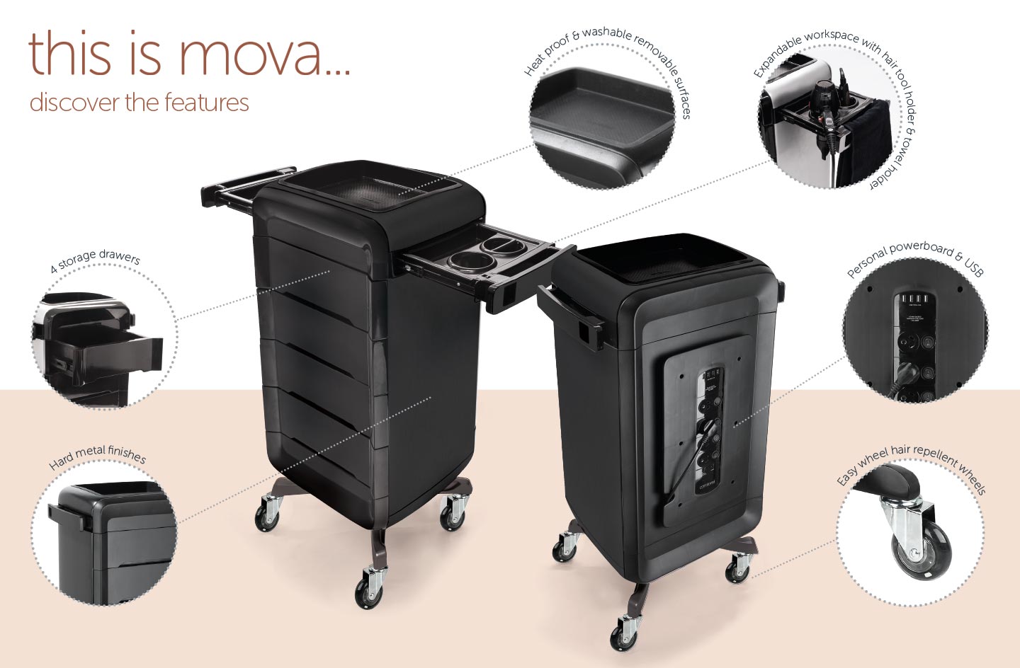With clean lines and classic proportions, every function and feature was considered. Mova is designed to keep up with the pace of your work. It’s your very own personal assistant. We have transformed the idea of a salon staple storage into a personal mobile work assistant that moves and works with you.