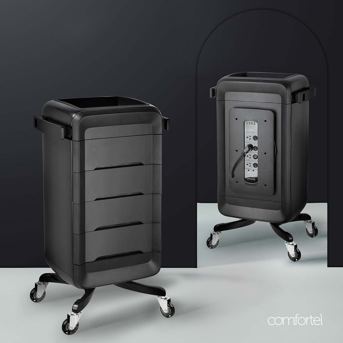 The Comfortel mova hairdressing trolley was designed for salons, and developed with hair stylists. We went out to see what hairdressers really wanted and needed. We watched, we asked, and researched in depth on how you worked, so we could create a personal moving workspace for you to create with pride. Finally we designed a thoughtful, modern trolley that suits the way you work and compliments your salon space.