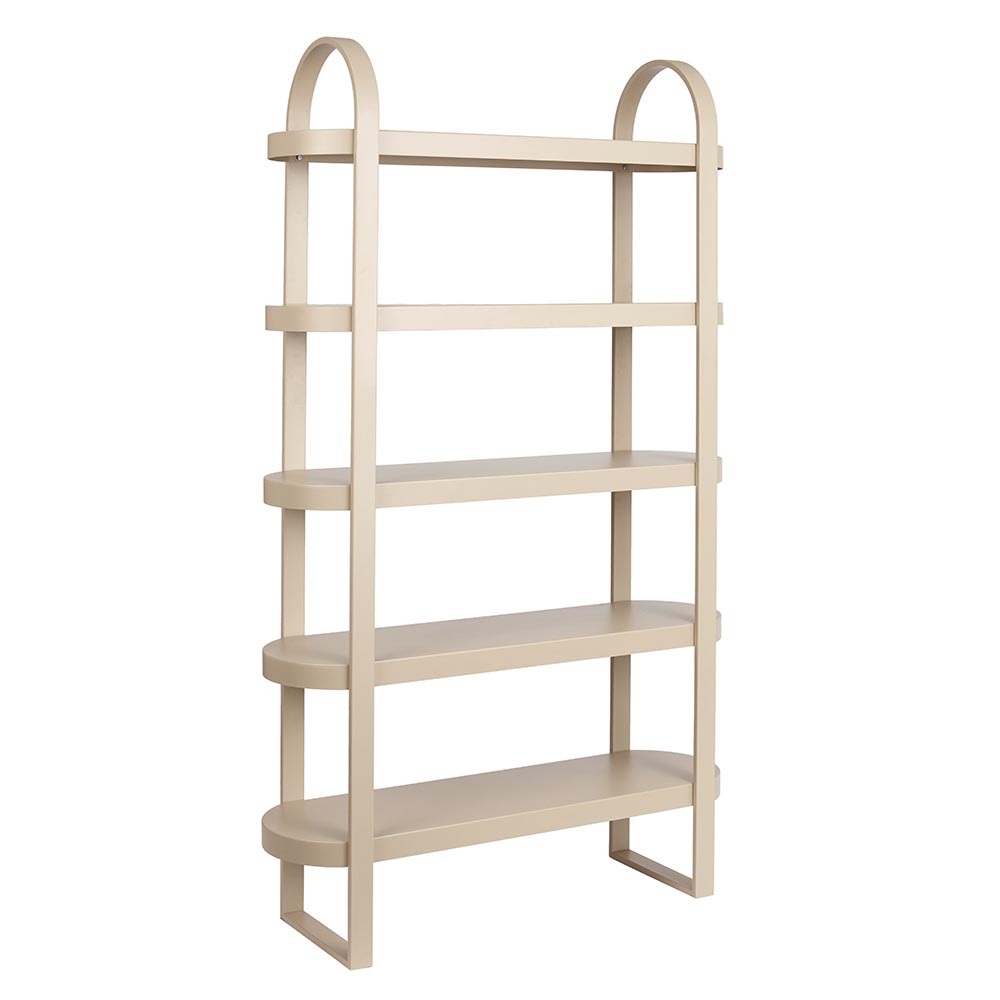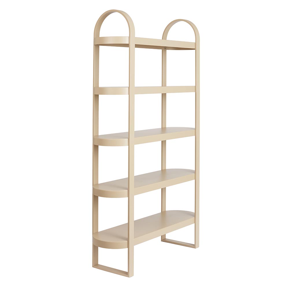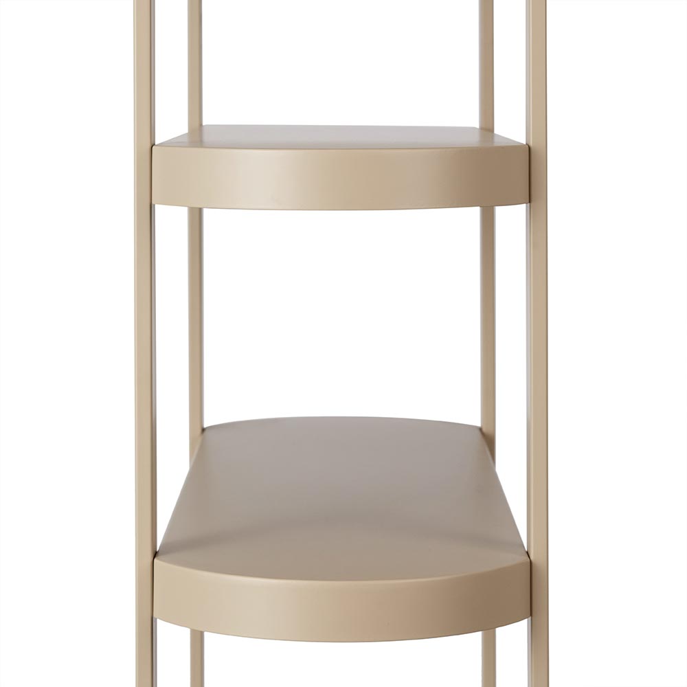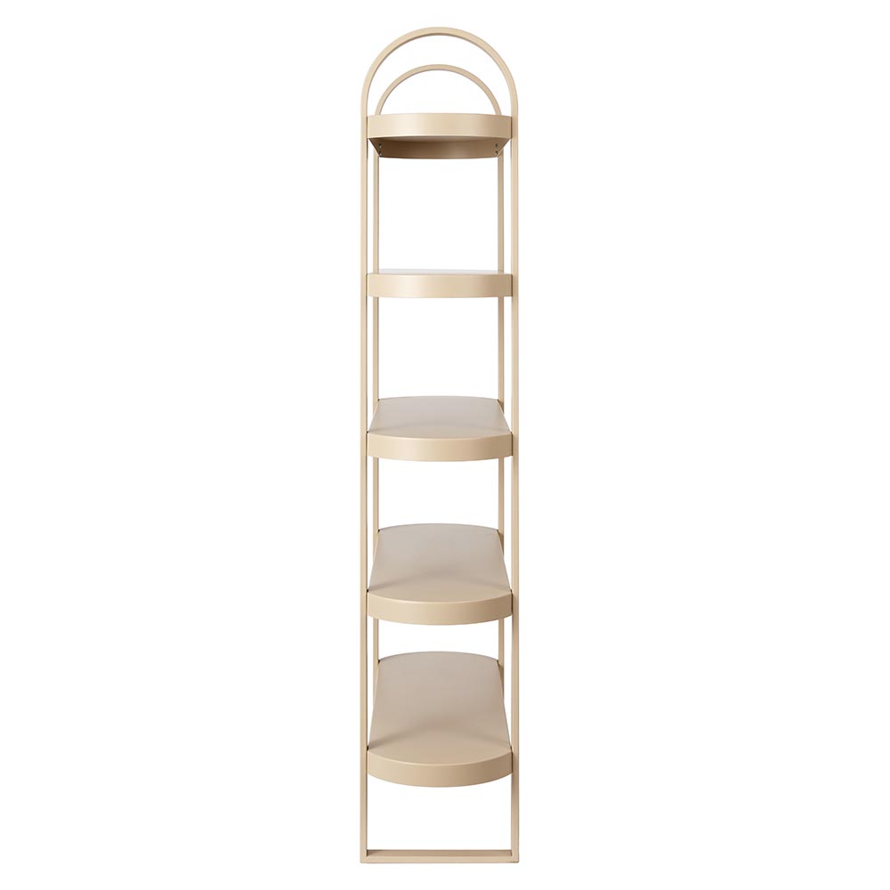 Meet Maya, The Epitome of Modern Elegance. Stepping into the spotlight, Maya Retail Storage Shelves are a testament to refined design and modern aesthetics. With a silky beige powder-coated finish on metal, they showcase the captivating allure of their arch curve design. The five-shelf structure not only exudes style but also promises to be a statement piece in any salon setting.