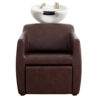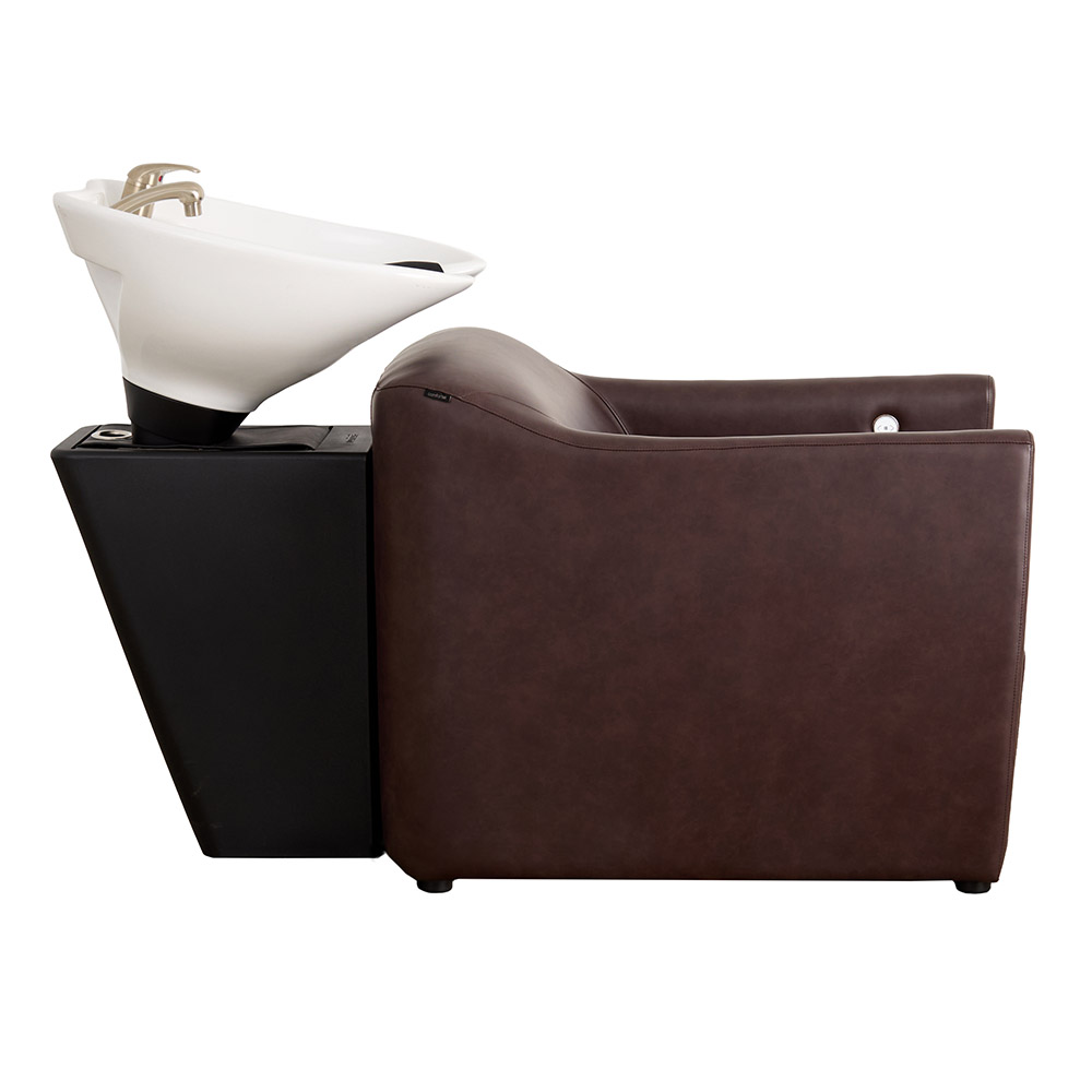 Vespa introduces warmth and reassurance to the shampoo area, with a strong, composed presence shaped by softly rounded arms and a structured silhouette. Finished in Merlot Vinyl, a deep blend of burgundy with warm chocolate undertones, she feels inviting, grounded and confident.