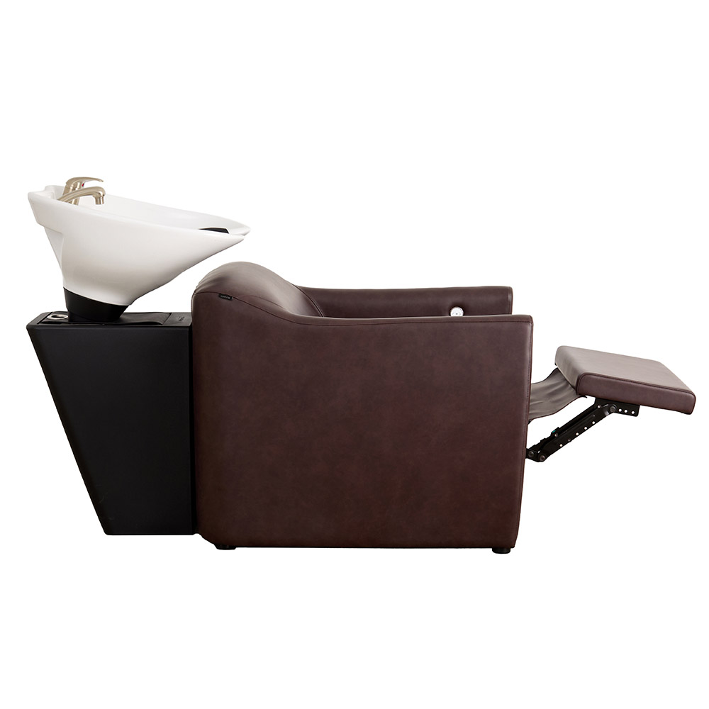 Comfort is at the heart of Vespa’s design. Generous cushioning supports the body through every stage of the wash, while a discreet control button positioned on the inside of the arm allows clients to adjust their own recline, finding their preferred position with ease. It’s an intuitive detail that puts comfort quite literally at their fingertips.