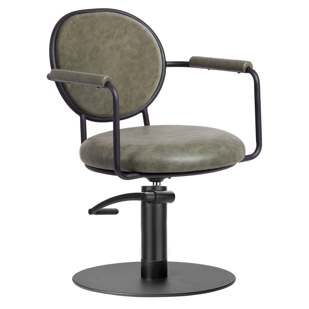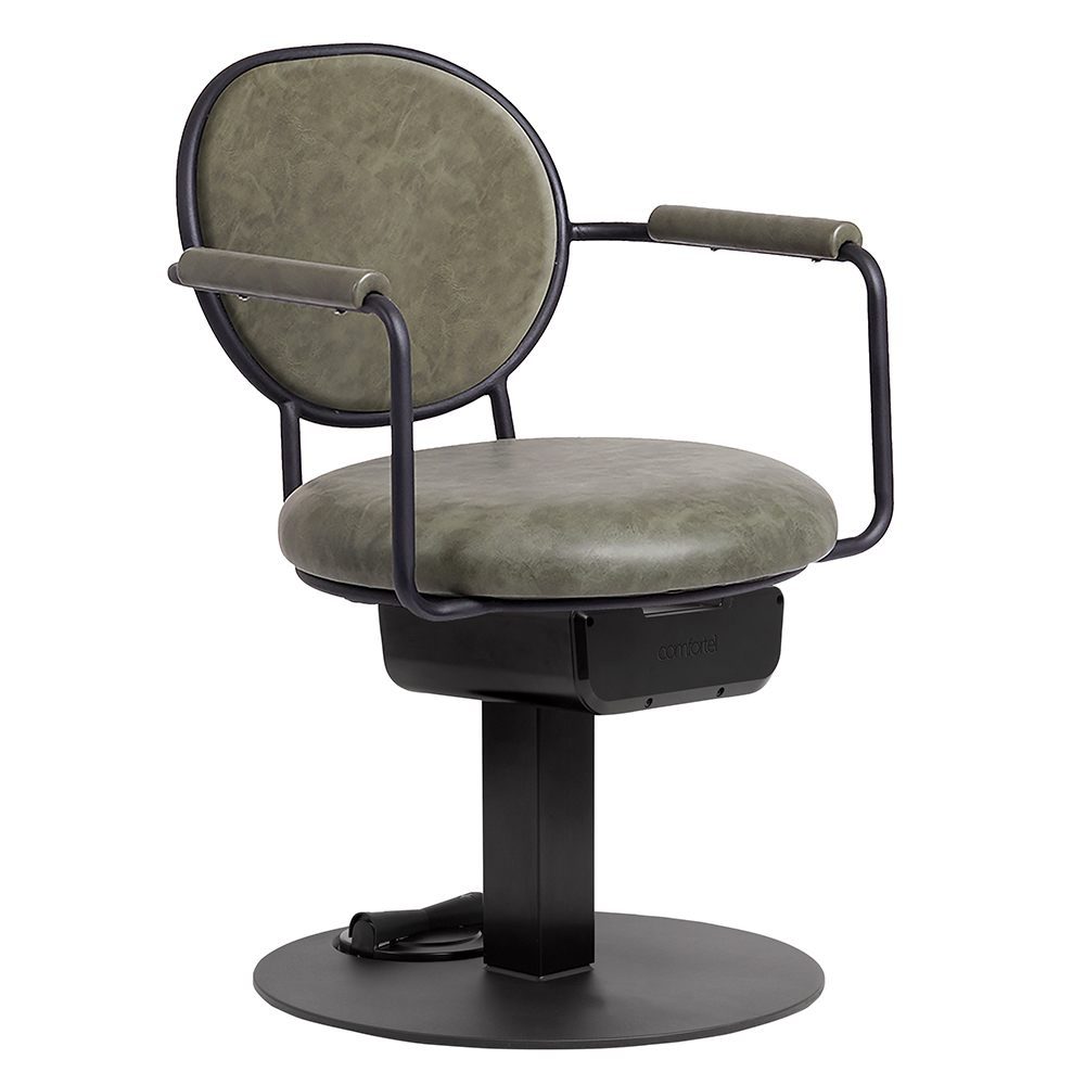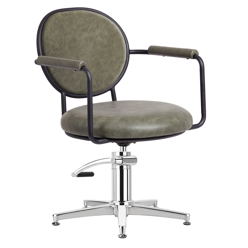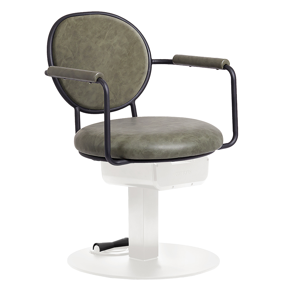 Martina’s frame boasts padded armrests and sage green upholstery, combining comfort and style for an inviting and inspiring look. The padded backrest of the Martina Salon Chair is as comfortable as it is stylish, providing the perfect place for your clients to relax while you unleash your creativity.