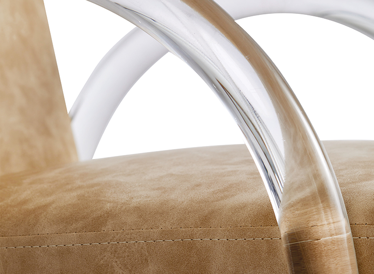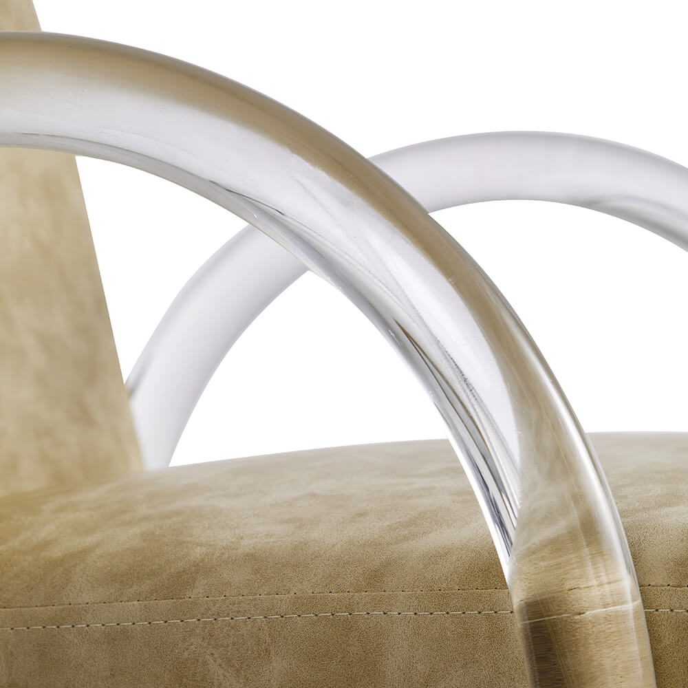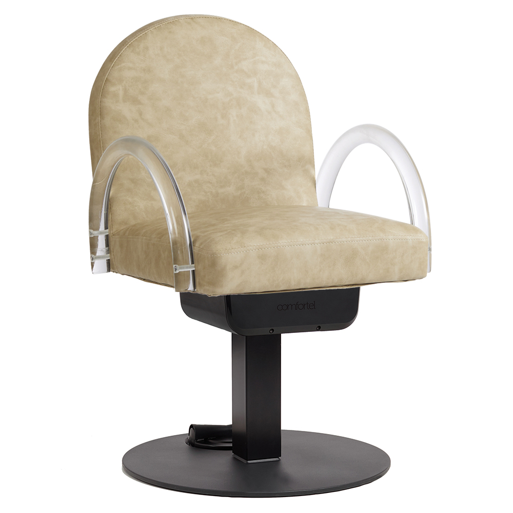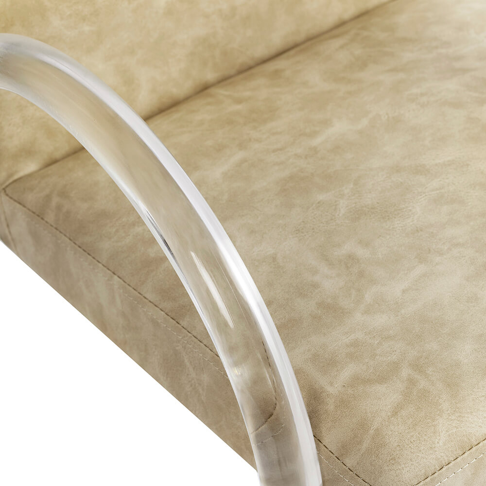 Introducing Archie, a curvaceous salon chair with accent acrylic arms for those seeking a neutral yet bold design.
