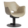 A winged arm hairdressing salon chair, with a retro twist. With curved lines and angled arms, the Chloe is a 60s inspired take on the classic wing chair design. With detail piping and round bucket seat, it is a retro twist on sophistication.