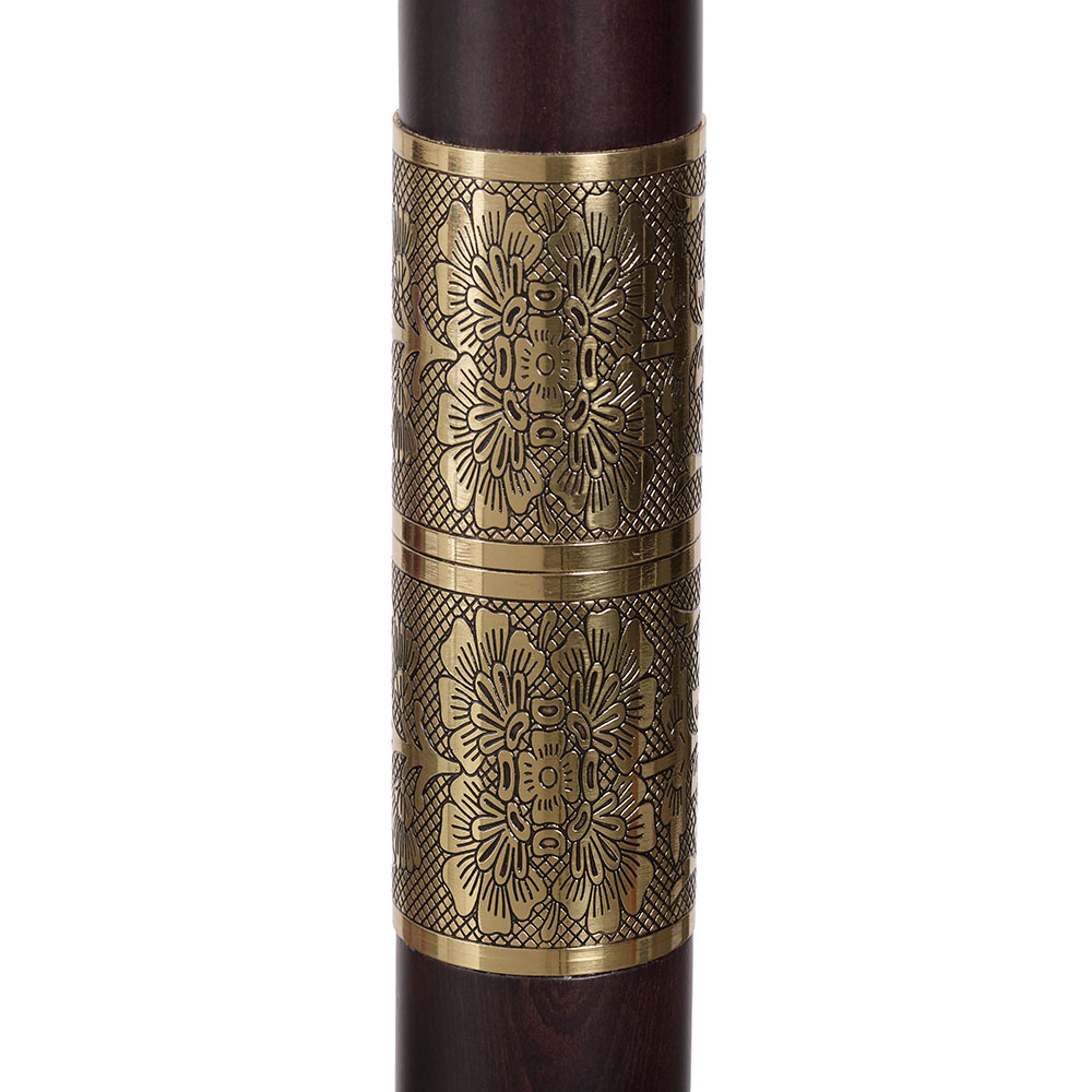 Crafted from solid wood in a rich espresso finish and adorned with brass accents, this stand is designed for both function and beauty.